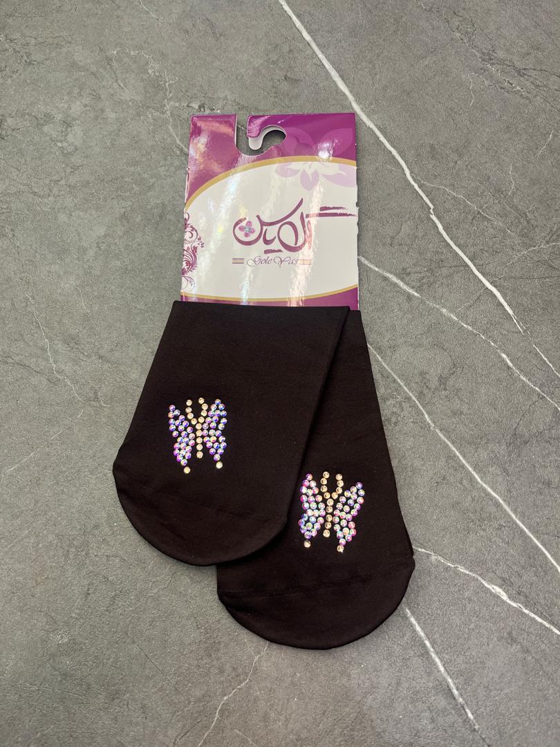 جوراب قهوه ای نگین دار کد 1257