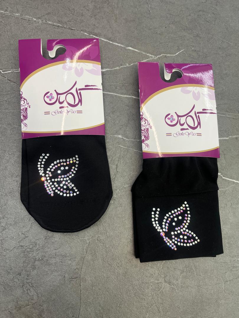 ست ساق دست و جوراب مشکی نگین دار کد 1198
